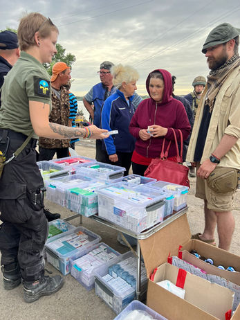 On June 6, 2023, the Kakhovka Dam on the Dnipro River, which formed the Kakhovka Reservoir in the lower reaches of the river, was destroyed. This destruction led to widespread flooding downstream, as the river's flow direction essentially changed to the southwest. The Universal Aid Ukraine team was on site for seven days to provide emergency relief. We primarily distributed medicines to affected civilians who had lost their belongings, as well as to areas that were only accessible by boat due to the flooding and were cut off from supplies.
